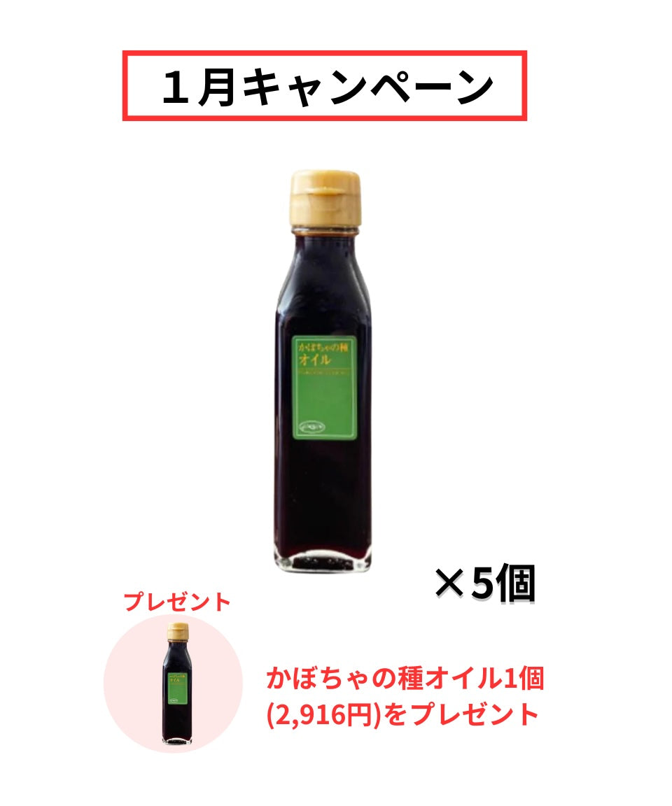 【1月キャンペーン】かぼちゃの種オイル5個(14,580円)をご購入で、かぼちゃの種オイル1個(2,916円)をプレゼント🎁
