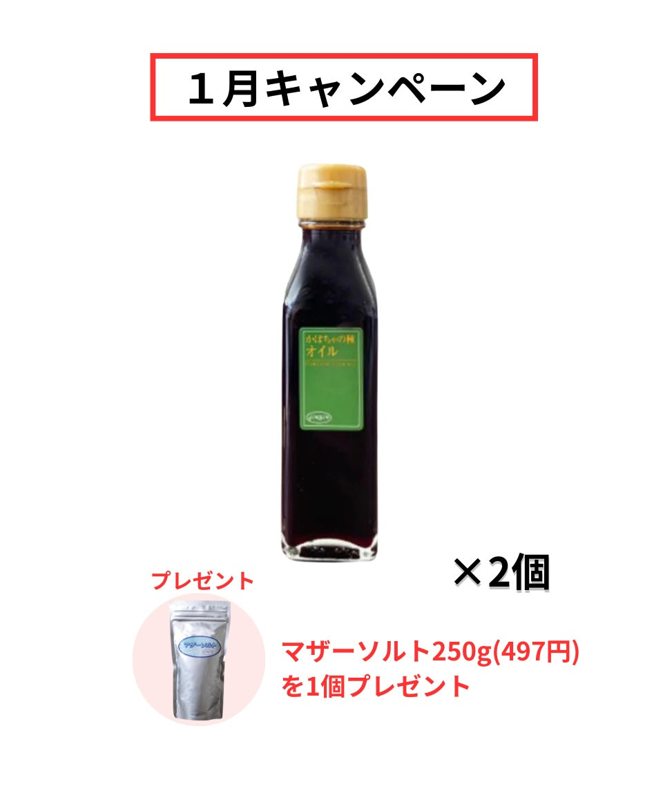 【1月キャンペーン】かぼちゃの種オイル2個(5,832円)をご購入で、マザーソルト250gを1個(497円)をプレゼント🎁