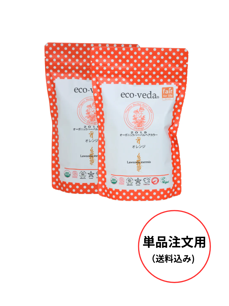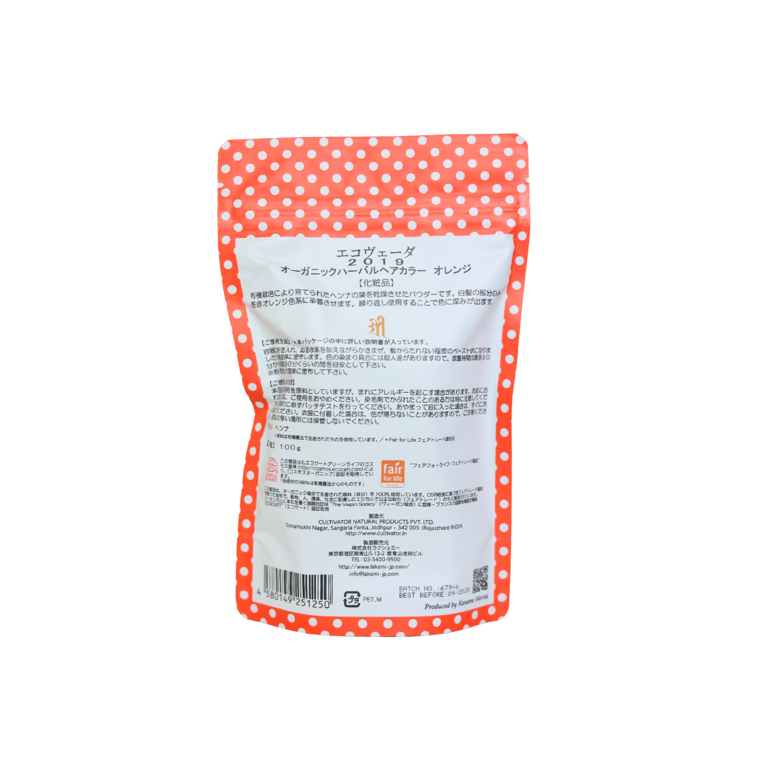 【送料込み単品注文専用】全国一律送料込み(沖縄、離島を除く) ※代引き対応不可 エコヴェーダ ヘナ 【オレンジ】赤みあるブラウンにするためのベースのオレンジ ×2袋セット