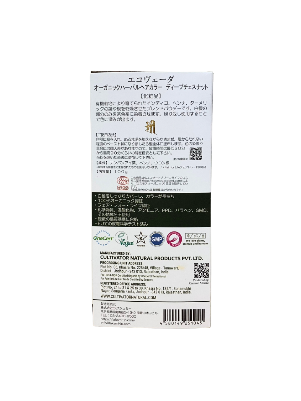 エコヴェーダ ヘナ 【ディープチェスナット】深みあるブラウン