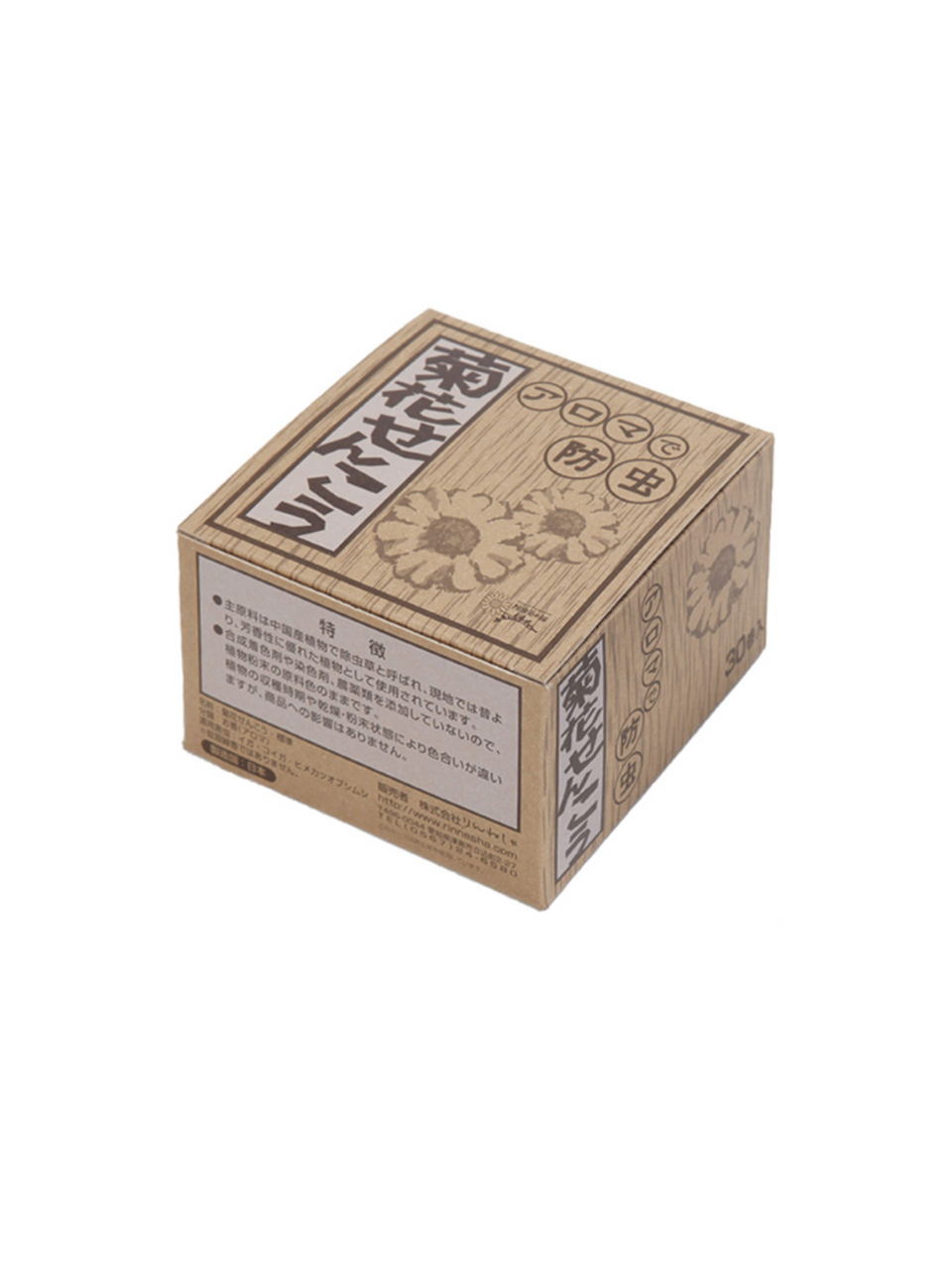 農薬・合成着色料・染色剤を使用せず、除虫菊と呼ばれる中国産の植物でつくった虫よけ芳香剤です。