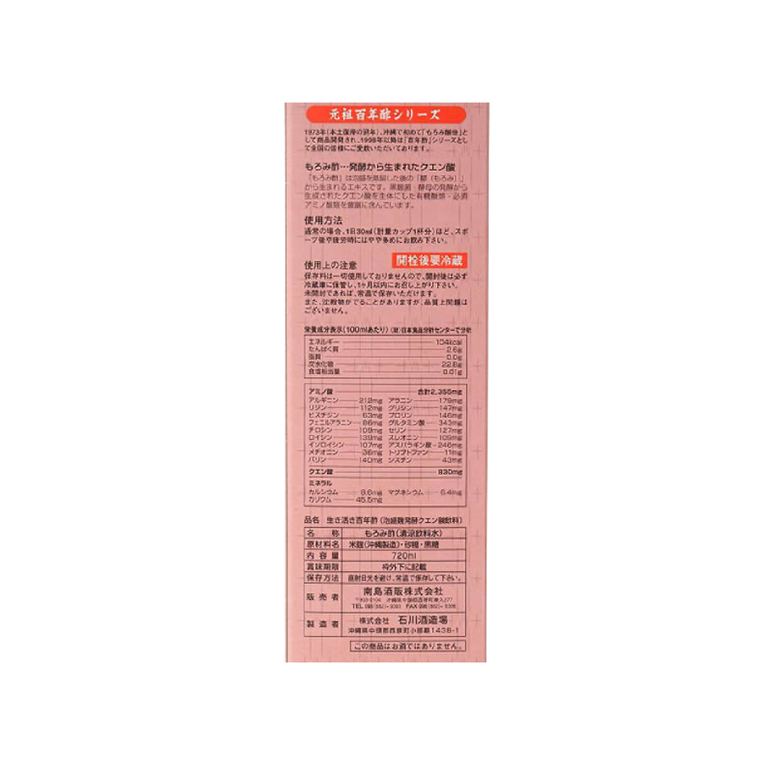 有用成分を豊富に含む「もろみ酢」に、沖縄産黒糖を加えて飲みやすくした黒麹発酵クエン酸飲料です。 黒糖のほんのりとした甘さと香りによりおいしく飲んでいただけます。